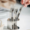 Elevate your dining elegance with our 6Pcs Fruit Fork Set with Stand, available in both gold and silver finishes. These exquisite forks are crafted from high-quality stainless steel, offering a touch of sophistication to any afternoon party or dessert service. The sleek and slender design of each fork is perfect for enjoying fruits, cakes, and mini desserts, making every bite a luxurious experience. This set, presented with a stylish stand, serves as a functional centerpiece for your coffee or tea setup, combining form and function with a gleaming finish to complement any cutlery collection.